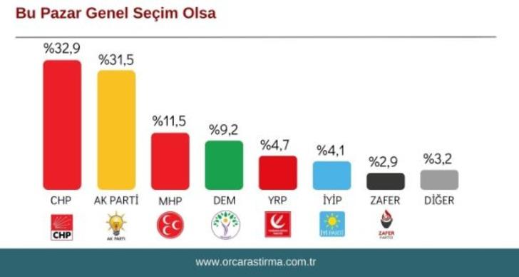 Seçim anket sonuçlarına göre CHP birinci parti olurken; AK Parti ikinci sırada yer aldı.